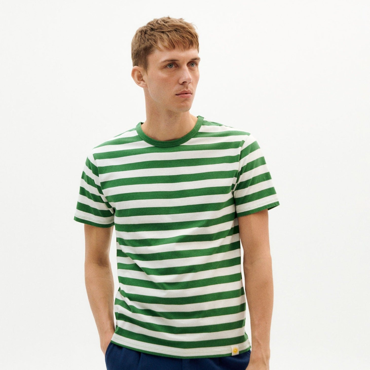 Thinking Mu // Green Stripe T-Shirt - Green/White
